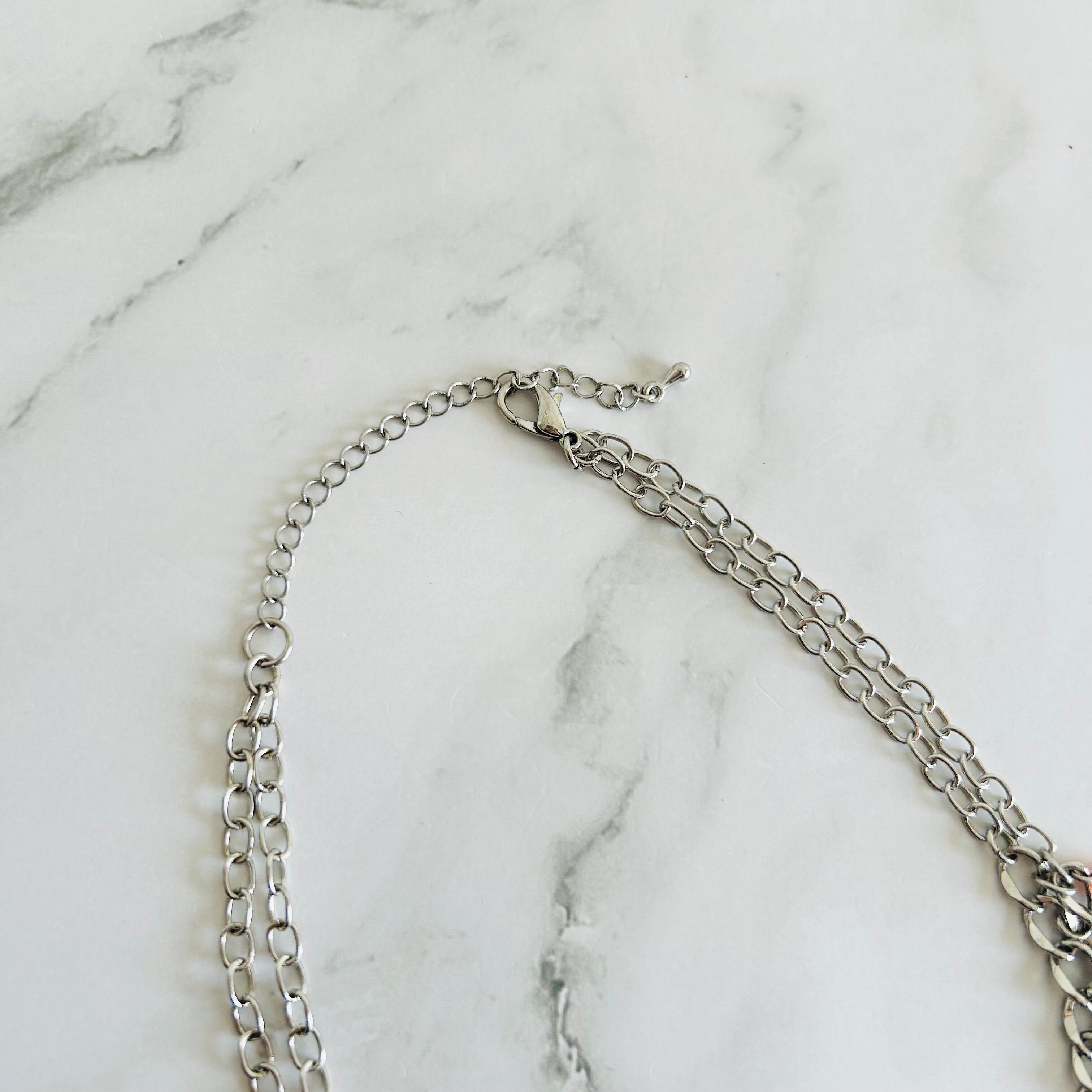 クリアレッド✖️アンティークシルバーカラーのネックレスです。